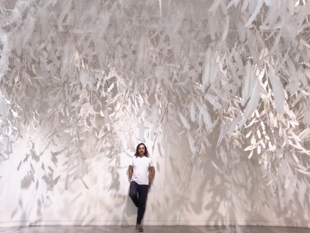 曾為空軍飛行員的游文富,以羽毛詮釋雲的柔軟,捕捉空氣、風與聲音的無形律動;而竹子,則象徵他回歸根源的情感──那是與記憶中童年土地緊緊相繫的材料。透過羽與竹,他描繪時間的流轉、生命的韌性,以及潛藏於萬物之中的靜謐脈動。